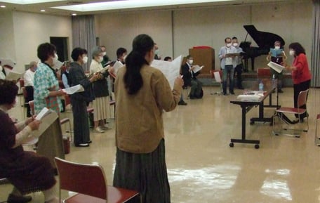 日立システムズ練習室等のような広い会場では、混声で全体練習を行う。